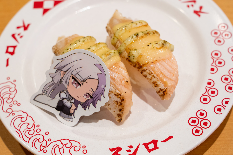文豪ストレイドッグスコラボ限定ピック付き サーモン バジルマヨチーズ炙り