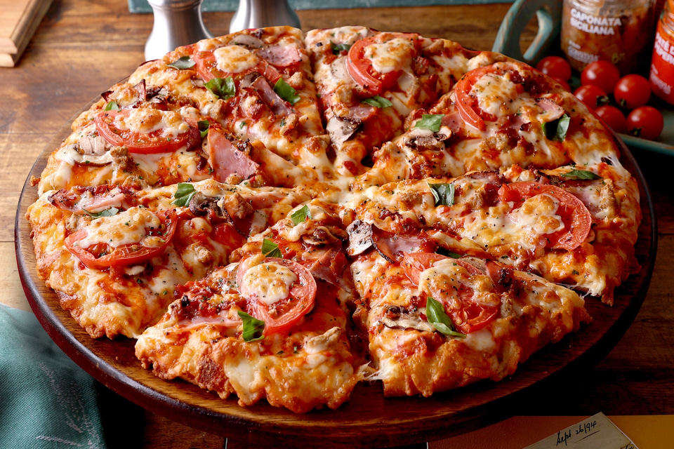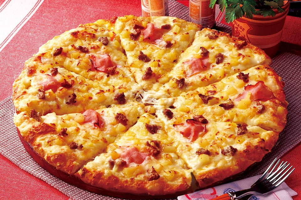 1989年発売。マヨネーズとオニオンを和えたポテトがたっぷり。コーンの甘みとベーコンの旨み、焼けたマヨネーズのコクが重なり合う、ボリューム感とコクが楽しめる人気ピザ。