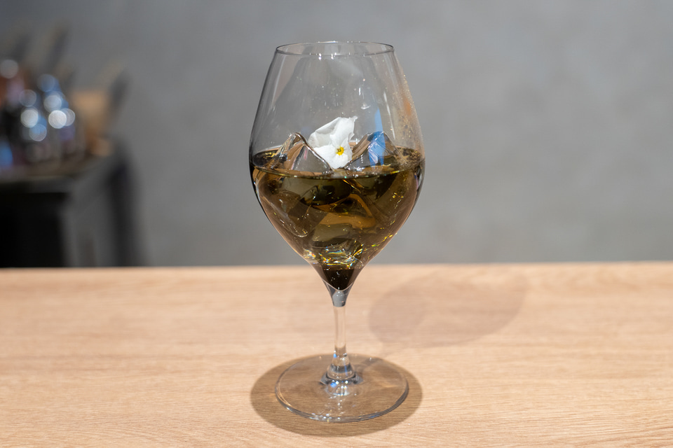 最後に、SUMADORI Meetsのシグネチャーカクテル2品を紹介しよう。香り・味わいを楽しめる「Obsidian(オブシディアン)」は、レモンフレーバーとベルジュの酸味にマスカットの優しい甘さをあわせた飲みやすい一杯。見た目の大人っぽさが魅力だ。
