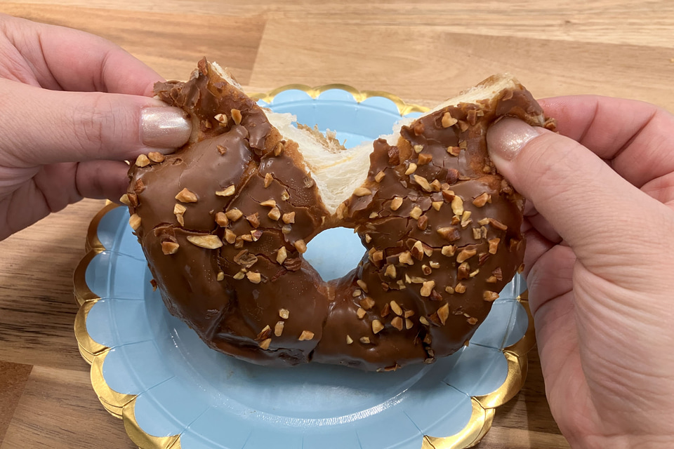 試食で提供された商品をどれくらいもっちりなのか割ってみたところ、どれも本当にも~っちり! 生地の伸びがよく、割るのに少し力が必要なくらい弾力が感じられた。