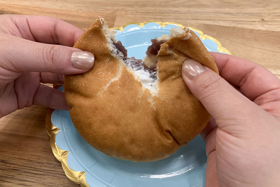 食べてみると、「超も~っちり食感キャラメルドーナツ」は生地がもっちりしていてそこにキャラメルソースが加わるととてもなめらか。口の中が幸せに満たされる! 「超も~っちり食感ホイップあんぱん」は、あんぱんでは今まで巡り合ったことがないもっちりさ。ミルククリームがたっぷり入り、こしあんもやさしい甘さでお茶と一緒におやつにもよさそう。「超も~っちり食感ピザパン」は、フランスパンのような香ばしさを感じながらピザソースとチーズソースがジューシーで、満足感のある味わいだった。