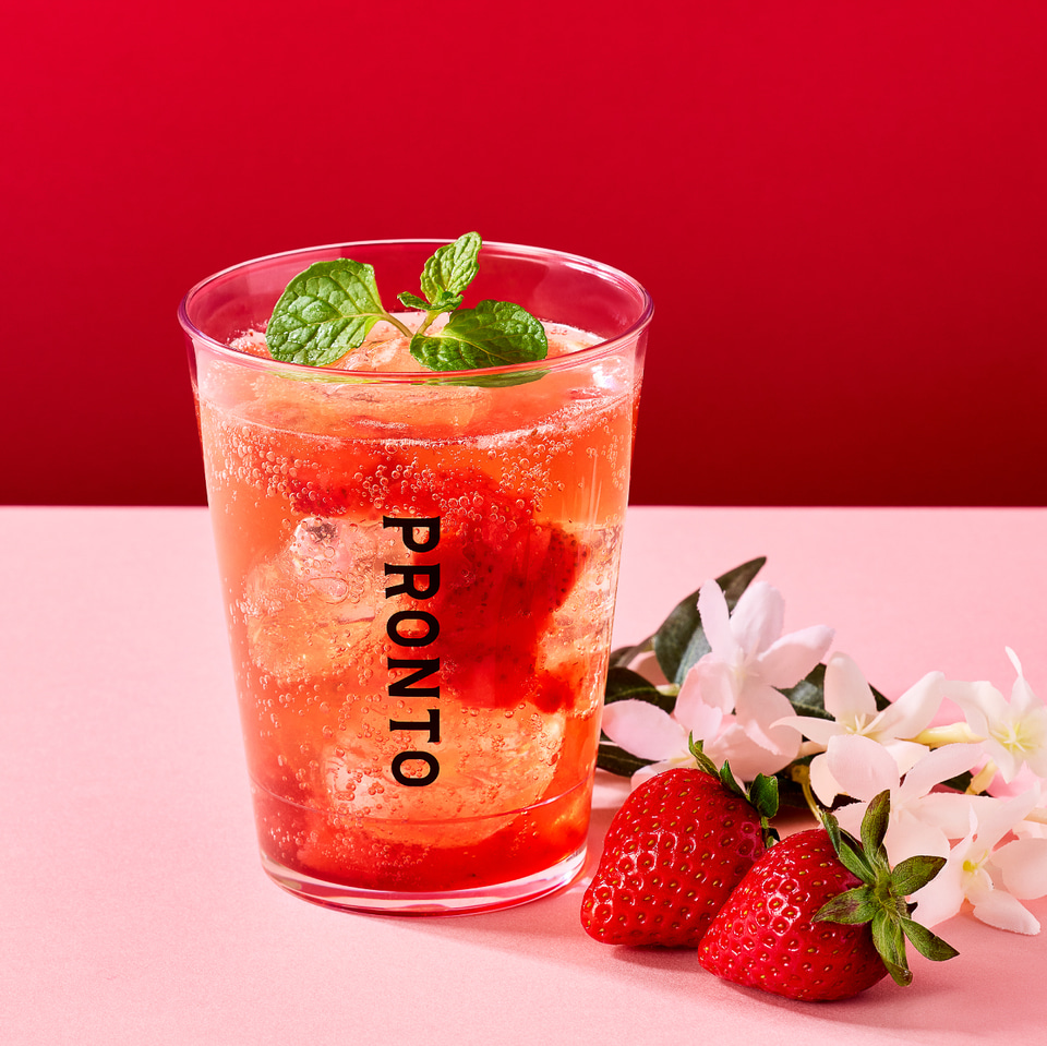 「PRONTO(プロント)」(プロントコーポレーション)は、いちごを使った春限定ドリンク2種を、4月14日から6月8日までのカフェタイム限定で販売。さらに、通年販売でドリンク1種も展開する。