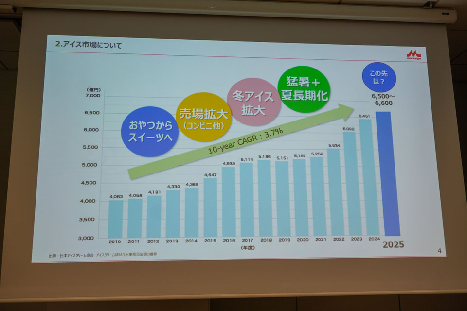 同社では発表会を開催し、マーケティング本部 事業マーケティング部 冷菓事業部長 迫口真輔氏が背景や商品について説明した。