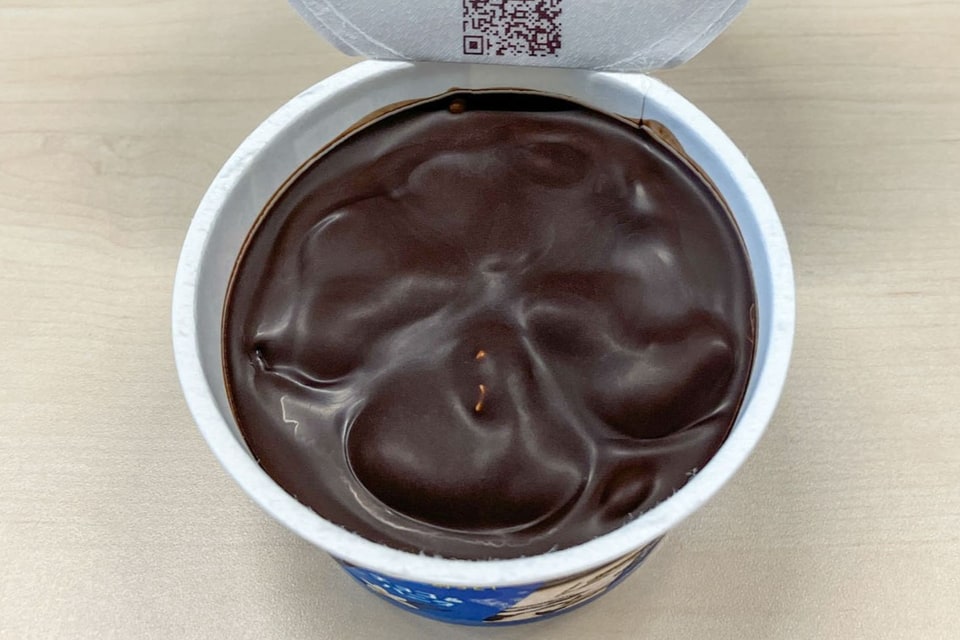 実際に試食したところ、手元に「Variche」が届くと「冷凍庫から出して3分待つとバリバリとした音や食感が楽しめる」とアナウンス。3分経って開くと表面はやや波打っている。スプーンを入れると、気持ちよくチョコレートがバリッと割れた! 食べてみるとチョコレートの厚みと量に驚き、口の中でチョコレートが小気味よくバリッバリッと割れ、バニラアイスクリームと調和し濃厚な味わいだった。