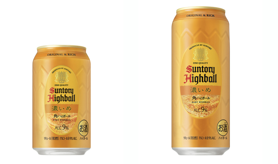 パッケージにはブランドを象徴する亀甲模様をあしらい、「角ハイボール缶」は銀白色、「角ハイボール缶〈濃いめ〉」は銅褐色を基調としたデザインに刷新している。