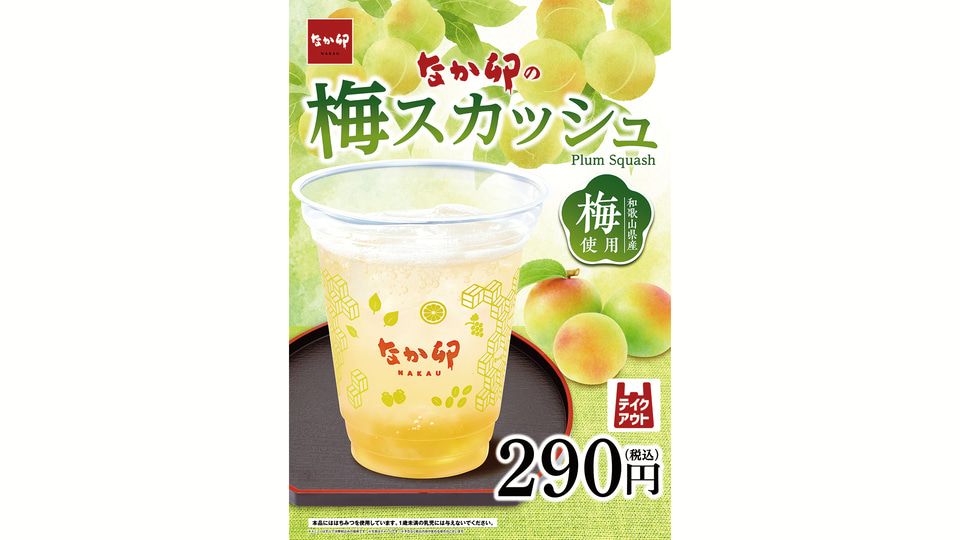 丼ぶりと京風うどんの「なか卯」は「梅スカッシュ」を4月15日から販売する。価格は290円。