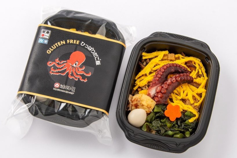 「GFひっぱりだこ飯」は、名物駅弁「ひっぱりだこ飯」をベースにケンミン食品と共同開発したグルテンフリー仕様の商品。大阪・関西万博会場内で販売して好評を博し、今回家庭向けに再構成して冷凍商品として販売する。電子レンジ解凍はもちろん、自然解凍(15℃で4~6時間)でも食べられる。
