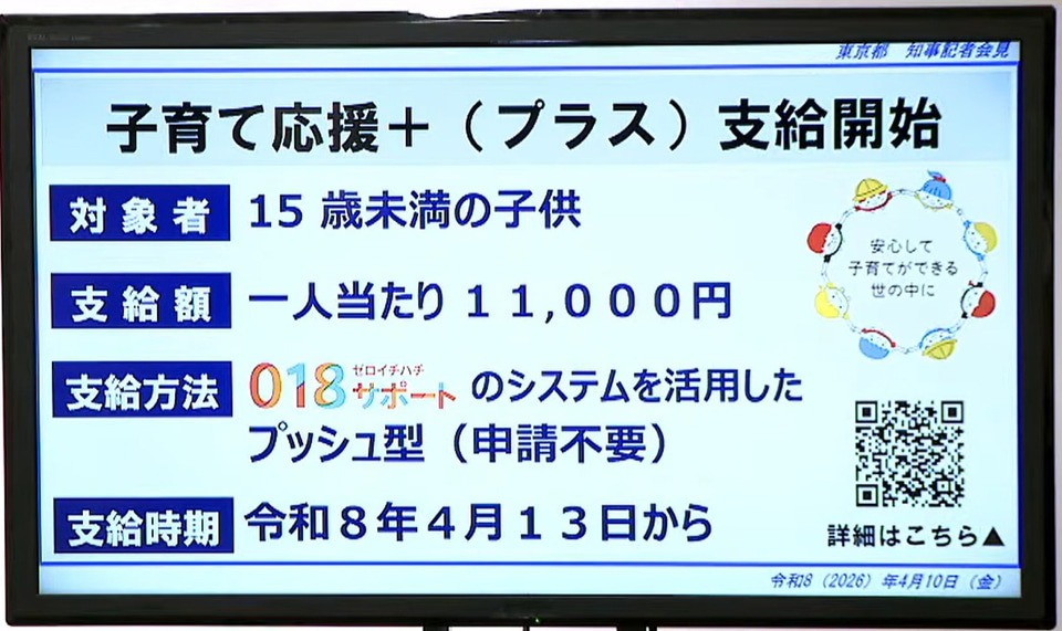 「東京アプリ生活応援事業」対象外の15歳未満を対象に“1万1000円”を支給する「子育て応援+(プラス)」を発表