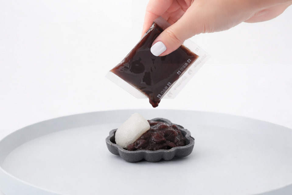 もなか種(皮)、粒あん、お餅を別々に個包装した、手づくりタイプのもなか。サクサクとした食感の中に、国産もち米の香ばしい風味と、たっぷり入った北海道小豆粒あん、やわらかいお餅を同時に楽しめる。