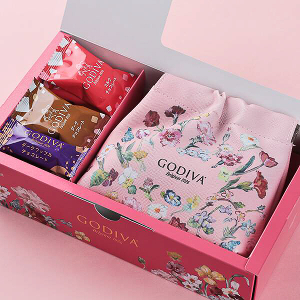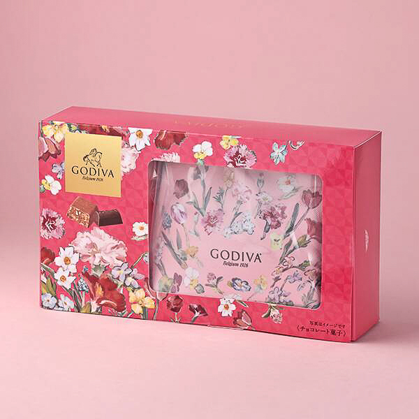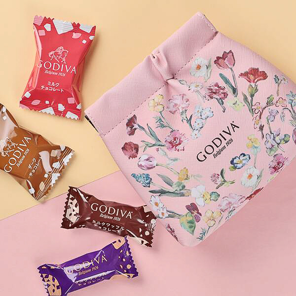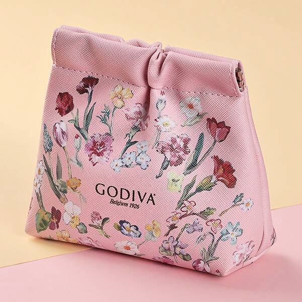 カルディ、春らしいピンク色に花柄をあしらったゴディバの“ポーチ&チョコ”を発売