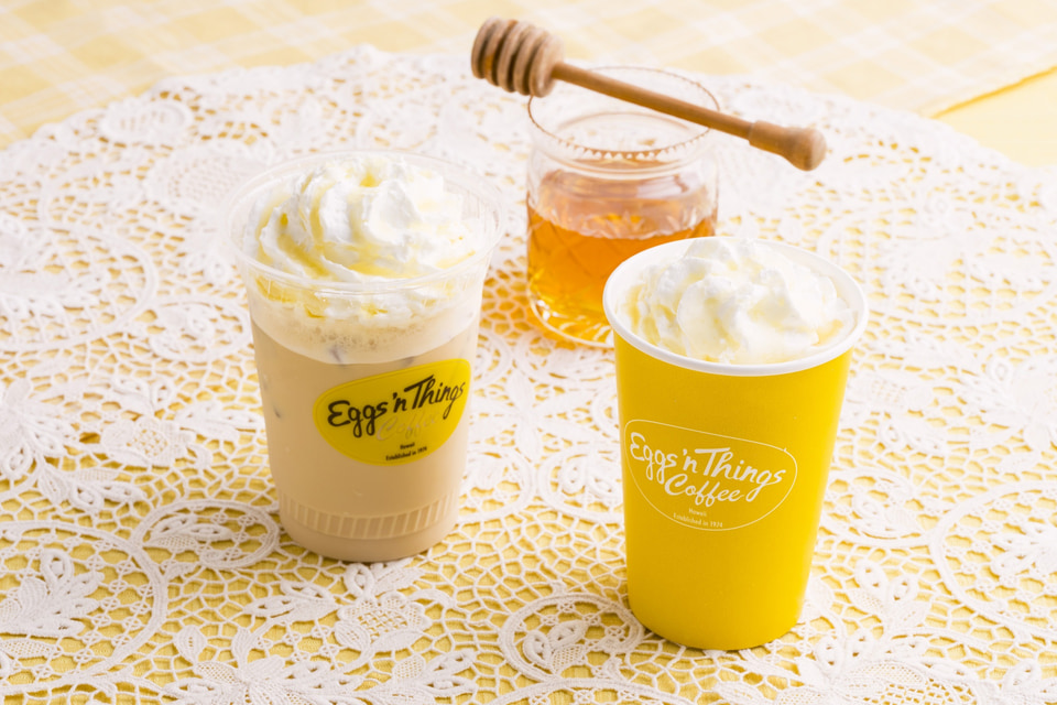 また「ハニーマスタードチキン&エッグス」は、香ばしく焼き上げたチキンに特製ソースを合わせ、はちみつの甘みとマスタードの刺激が絶妙にマッチし、チキンの旨みを引き立てている。そのほか、優しい甘みが広がる「ハニーミルクラテ」も販売する。