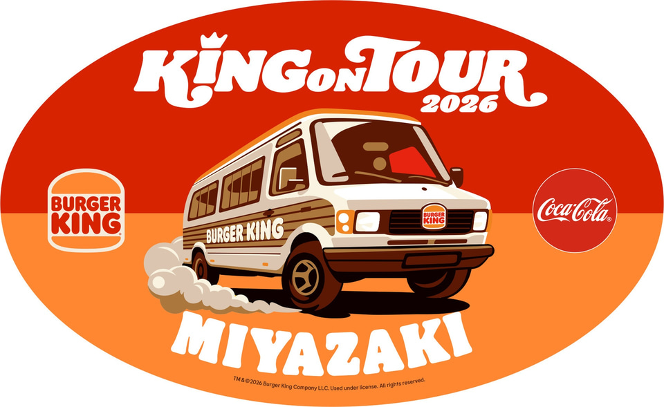 バーガーキング(ビーケージャパンホールディングス)は、フードトラックで全国各地を巡る「KING ON TOUR 2026」を実施する。第1弾は、初上陸となる宮崎県宮崎市・佐賀県佐賀市・山口県山口市へ出店する。
