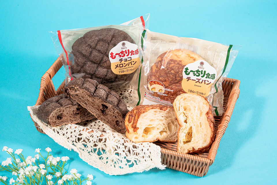ファミリーマートは、「超も~っちりパン」シリーズから「も~っちり食感チョコメロンパン」(170円)と「も~っちり食感チーズパン」(198円)の2種を、4月14日に発売した。