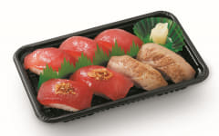 そのほか、天然めばちまぐろの赤身、炙り、漬けが味わえる「天然まぐろ三味(さんみ)ちらし重」や、赤身にぎり、炙りにぎり、ガーリックの風味を加えた「ザクザク醤油にぎり」が楽しめる「天然まぐろにぎりづくし」も登場する。