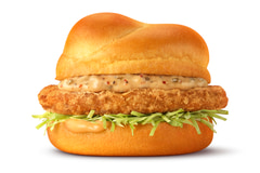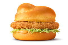 チキンタツタに、ネギ・にんにくの香味油とごま油をブレンドした、生姜がアクセントの油淋鶏風のタルタルフィリングを合わせた新商品。玉ねぎとたまごの食感がタツタパティの味わいを引き立てている。