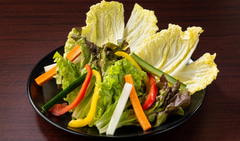 サニーレタス、白菜、ニンジン、パプリカ、大根、キュウリを巻きやすい形にカットした「巻き野菜」。肉とつけだれも組み合わせることで焼肉の楽しみ方を広げられるという。