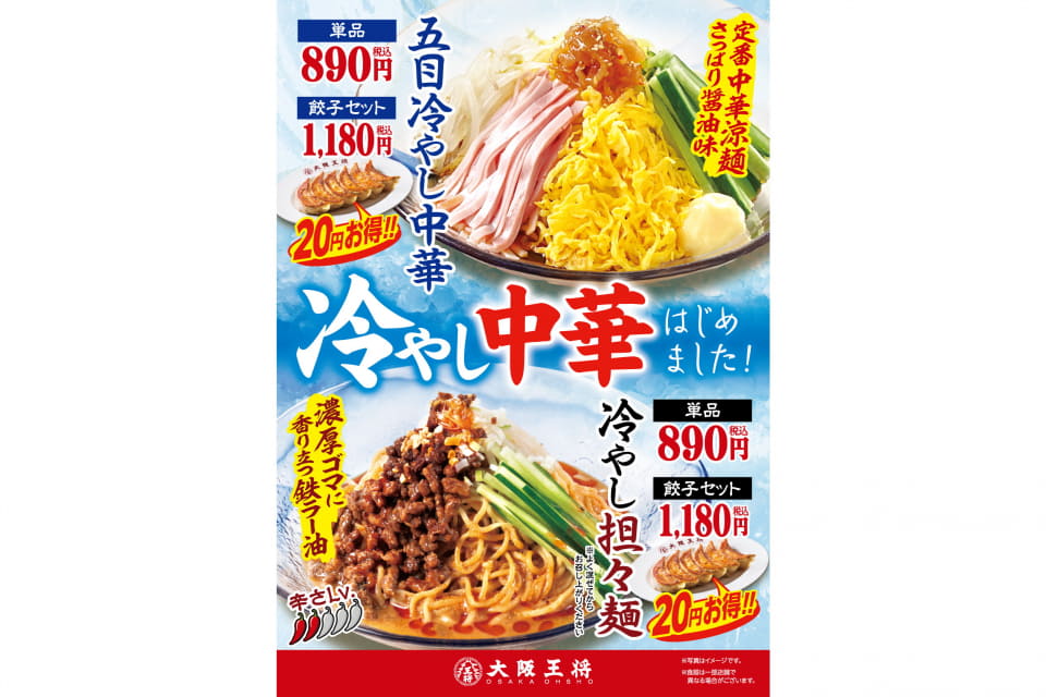 大阪王将、具材豊かな「五目冷やし中華」とピリ辛な「冷やし担々麺」夏季限定販売