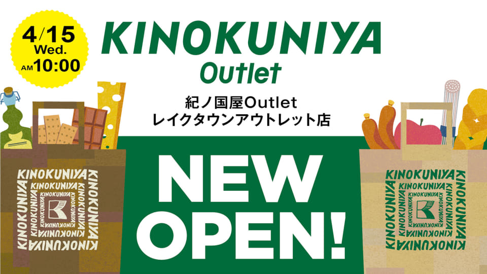 紀ノ國屋は、初のアウトレット業態店舗「紀ノ国屋Outlet レイクタウンアウトレット店」(埼玉県越谷市レイクタウン4-1-1)を4月15日にオープンした。