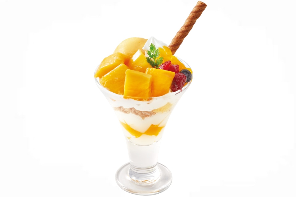 甘くてジューシーなマンゴーをふんだんにのせ、さらにマンゴージェラートをトッピングした贅沢なパフェ。ココナッツプリンやナタデココが加わることで、爽やかな初夏の味わいを楽しめるという。