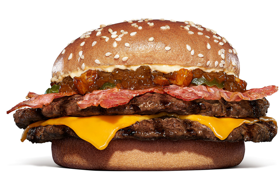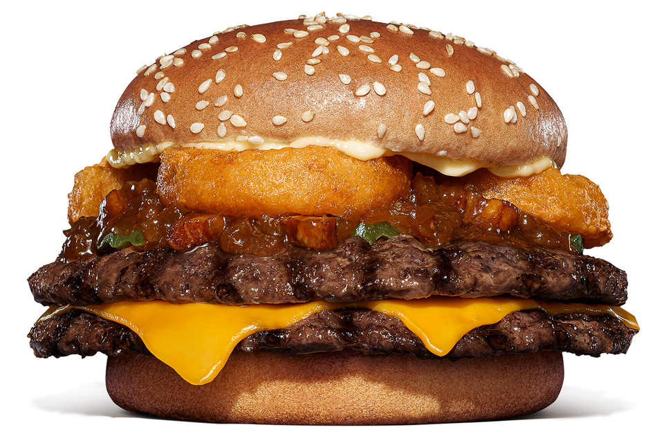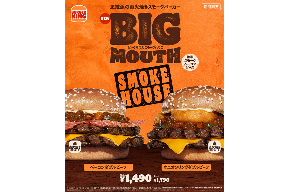 バーガーキング(ビーケージャパンホールディングス)は、「ベーコンダブルビーフ ビッグマウス スモークハウス」と「オニオンリングダブルビーフ ビッグマウス スモークハウス」を期間限定で4月17日から販売する。