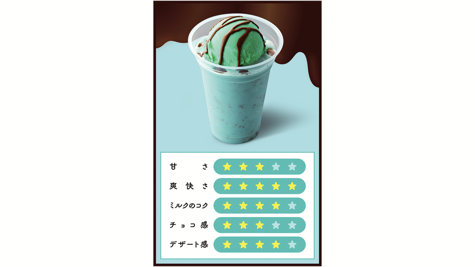 まずアイス部分をそのまま味わい、その後ドリンクと混ぜながら飲むことで、ミントの爽快感とチョコレートの甘みが広がる味わいが楽しめるという。