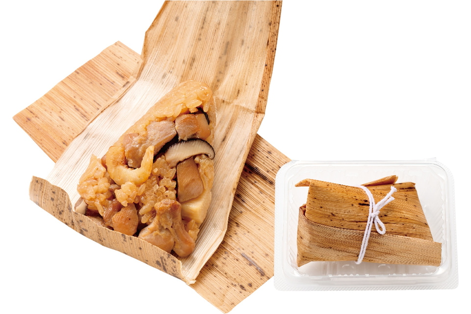 「ちまき」は関西ではこどもの日の定番で、鶏肉やしいたけ、たけのこ、ほしえびをもち米と一緒に炊き込み、具材の旨みをじっくり染み込ませた。せいろで丁寧に蒸し上げることで、もちもちの食感が楽しめ、ごろごろとした大きな具材で食べ応えがある。