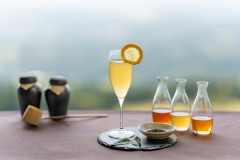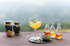 本宿泊プランでは、茶葉で育ったカンパチのお茶漬けを朝食で味わい、霧島連山に囲まれた絶景の茶畑で新茶摘みと釜炒りを体験できる。さらに新たに用意された「新茶テイスティング」では、3種の霧島茶の飲み比べから好みの茶葉を選び、カクテルにして味わうことができる。