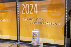 一番搾りの歴代パッケージがずらりと並んでいるコーナーでは、並べて比較することで「あ、ここが違う!」と細かな発見を楽しめる。SNSで発信したくなるようなフォトスポットも用意している。