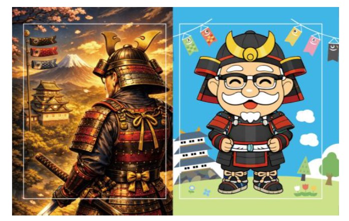 今回は例年配布している「武者カーネル塗り絵」(全2種)に加え、塗り絵を完成させて店舗へ持っていくと、「武者カーネルオリジナルステッカー」もプレゼントする。また2025年に続き、全国の店舗で制作された「武者カーネル」の写真が特設サイトで閲覧でき、気に入った「武者カーネル」に投票できる「武者カーネルコンテスト」を実施する。