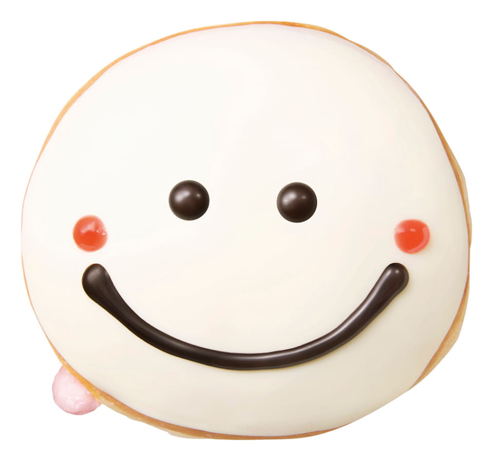 ミルキーなホワイトチョコの上に、ビターチョコで目と口を、お菓子のつや出しなどに使われるストロベリーナパージュで赤いほっぺを描き、スマイルを表現している。ドーナツの中には「とちあいか」を使用したストロベリークリーム入り。