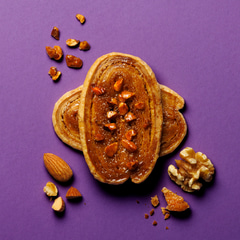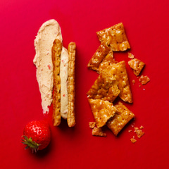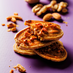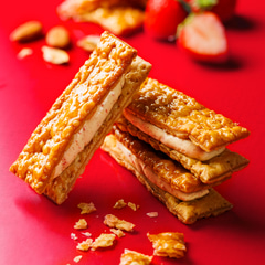 アーモンドペーストとホワイトチョコを合わせたクリームに苺顆粒を忍ばせ、フランス産小麦のパイでサンド。キャラメリゼした香ばしいパイとアーモンドのコク、苺の酸味が絶妙に組み合わさるという。