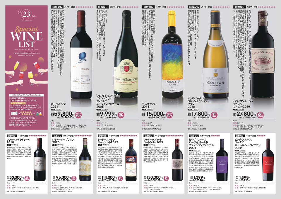「オーパス・ワン」やボルドー格付けシャトーの希少なワインも数量限定で販売