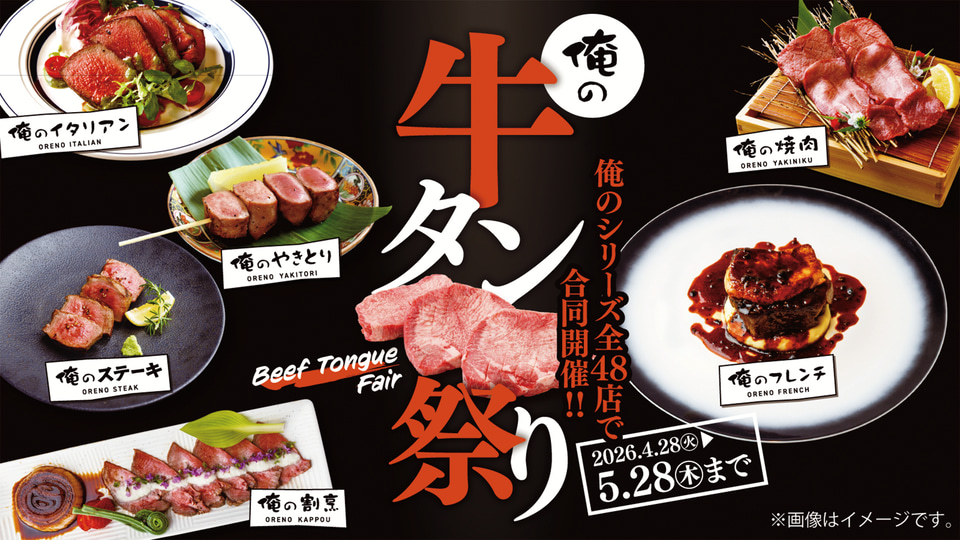 俺の株式会社は、「俺の」シリーズ全48店舗にて期間限定フェア「俺の牛タン祭り」を4月28日~5月28日に実施する。