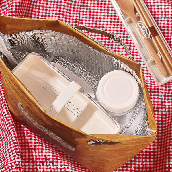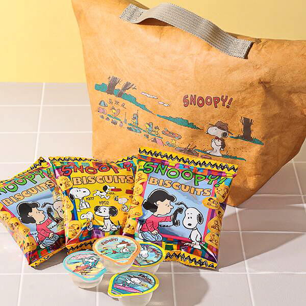 ビーグル・スカウトのスヌーピーやウッドストックたちをデザインしたクラフト紙の保冷バッグで、サイズは約305×165×125mm。ゼリーや焼き菓子などがセットになって、価格は1298円。