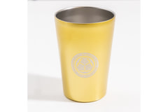 高級感あふれるゴールドボディに、マツケンの名前と芸紋を冠した特別デザインのステンレスタンブラー。保温・保冷性能で、コーヒー・お茶・冷たい飲み物も適温をキープする。