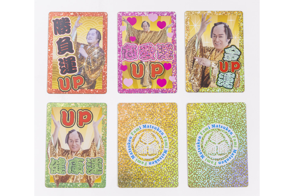 おまけとして「おみくじ開運カード」(全6種からランダムで1枚)が入り、500個に1個の確率で1万円相当の「ファミペイギフトカード」、3000個に1個の確率で松平健さんの直筆サインが入る。