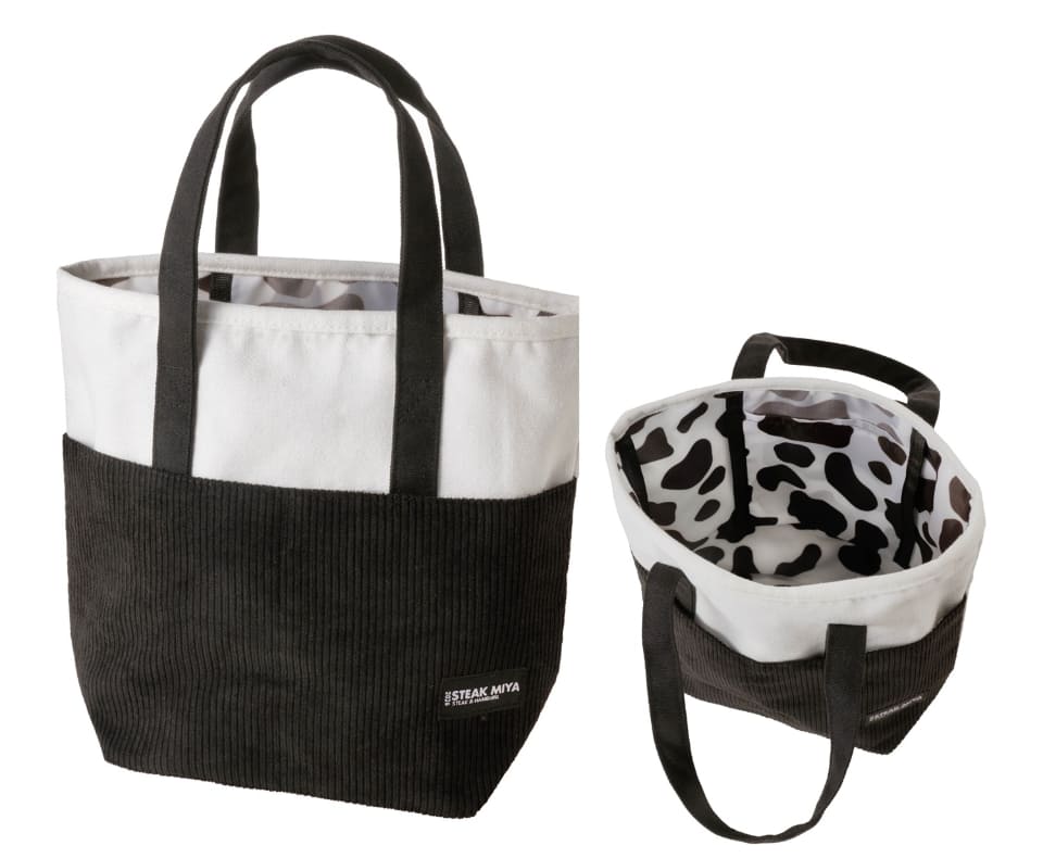 オリジナルグッズのスープボトルと3wayタンブラーは、店舗に持参すると2026年中スープとドリンクを1杯ずつ持ち帰ることができる。そのほか、公式キャラクター「も~たろ~」をイメージした牛柄のバッグ、自分のタイミングで使用できる「宮のたれ」ボトル引換券、1500円分クーポン券がセットになっている。