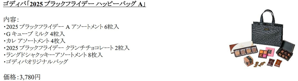 ・「2025 ブラックフライデー ハッピーバッグ A」(3780円)