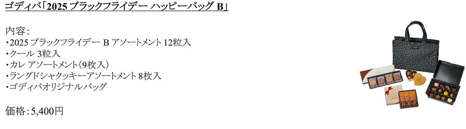 ・「2025 ブラックフライデー ハッピーバッグ B」(5400円)
