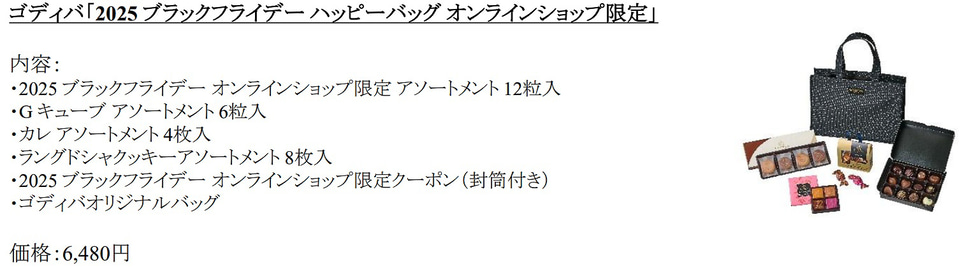 ゴディバ、福袋「2025 ブラックフライデー ハッピーバッグ」発売