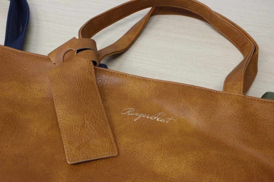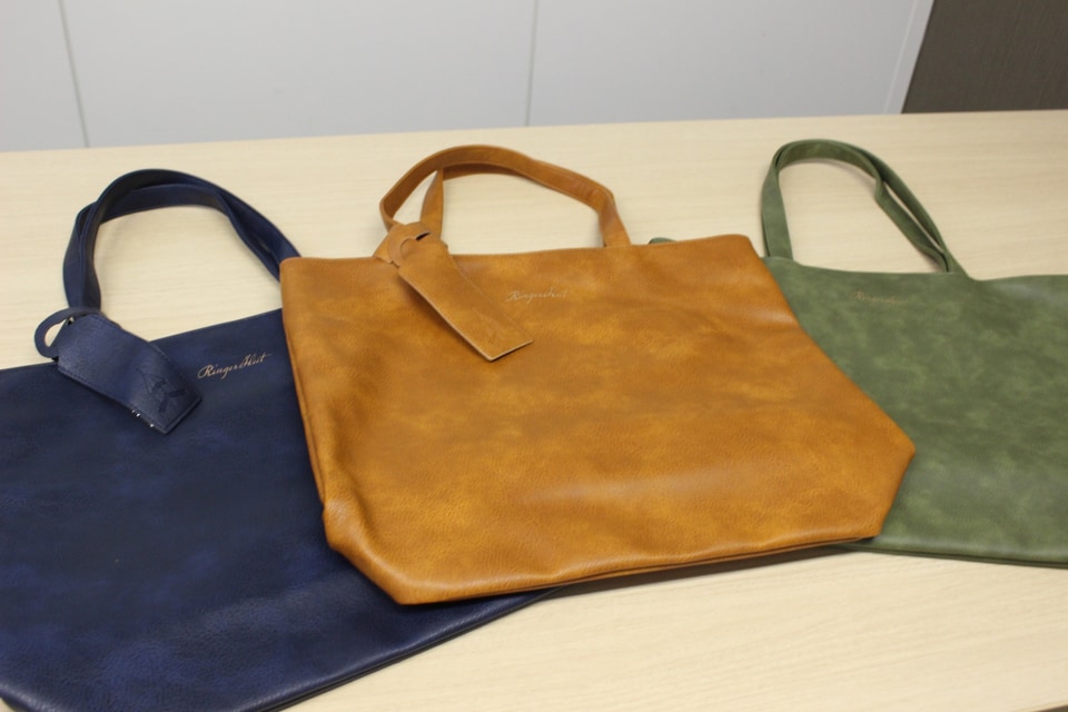 高級感のある合皮の生地を使用したオリジナルトートバッグで、カラーはブラウン・カーキ・ネイビーの3種類でランダムとなります。どのカラーも普段使いしやすい落ち着いたデザインです。チャック付きポケットもついており、機能性もバッチリです。