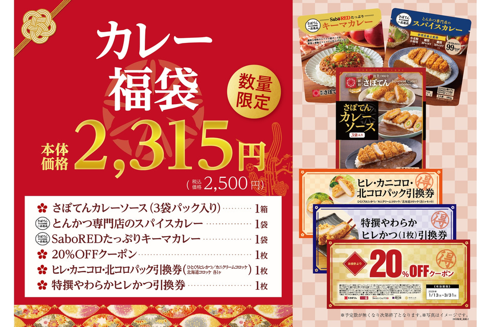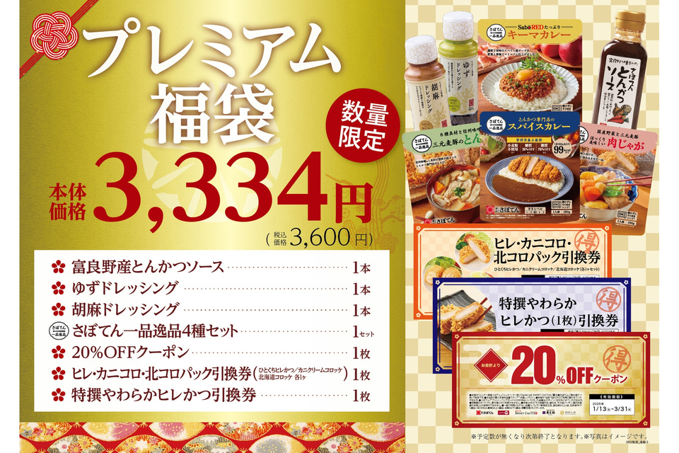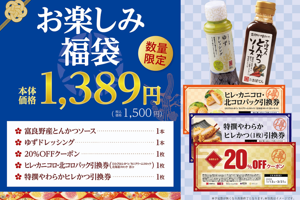 とんかつ新宿さぼてん(グリーンハウスフーズ)は、専門店の味がお得に楽しめる福袋4種を2026年1月1日に発売する。