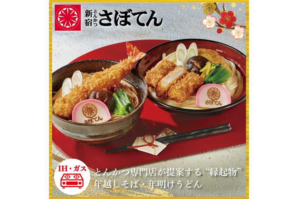 「とんかつ新宿さぼてん」公式オンラインショップでは、「揚げたて冷凍かつ」シリーズなどを展開しており、「年越しそば」「年明けうどん」をオンラインショップ限定で販売している。さぼてん自慢の「特大海老フライ」「特撰やわらかヒレかつ」を添えており、贅沢な味わいが楽しめる。
