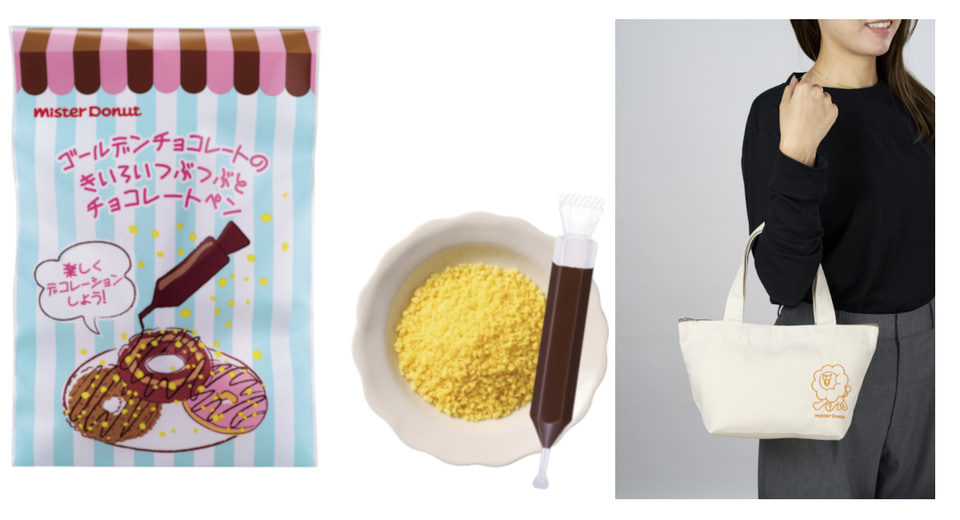 ミスタードーナツの人気キャラクターである「ポン・デ・ライオンと仲間たち」がデザインされた「ミスド福袋3800円」は、デコレーションキット、ポン・デ・ライオンミニトート、ハンドタオル2枚セットにドーナツ引換カード(20個分)が入った福袋です。今回福袋として初登場となる「デコレーションキット」は、人気ドーナツである「ゴールデンチョコレート」のきいろいつぶつぶと、チョコレートペンがセットになり、お好きなドーナツにデコレーションができるグッズです。