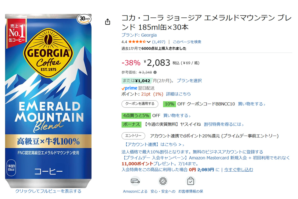 Amazon、コカ・コーラ「ジョージア エメラルドマウンテン ブレンド」など最大38%オフ。まとめ買いでお得に