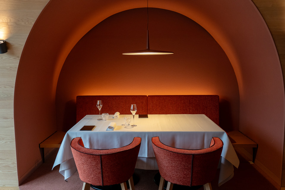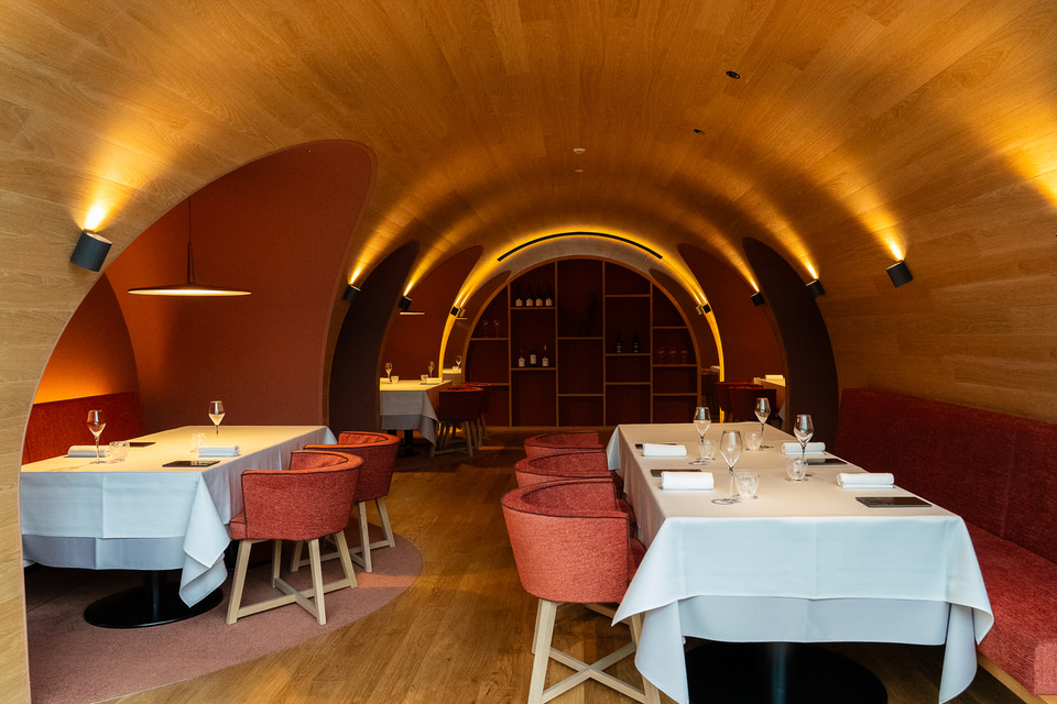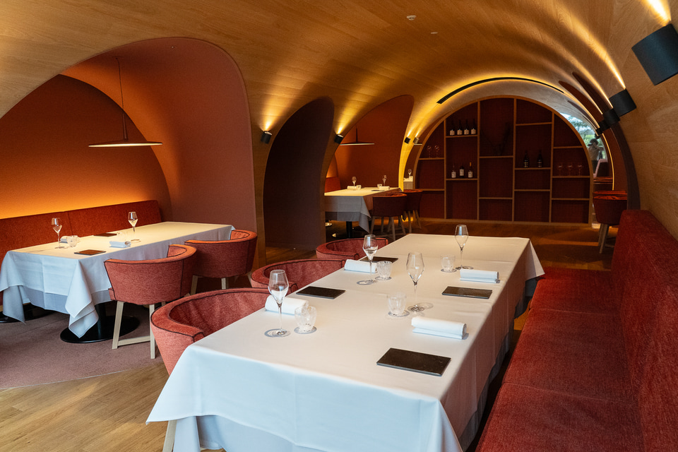 宿泊者限定で利用できるリゾナーレ八ヶ岳のメインダイニング「OTTO SETTE」は2024年4月に全面リニューアルオープンし、ワインカーヴを表現したデザインに一新されました。