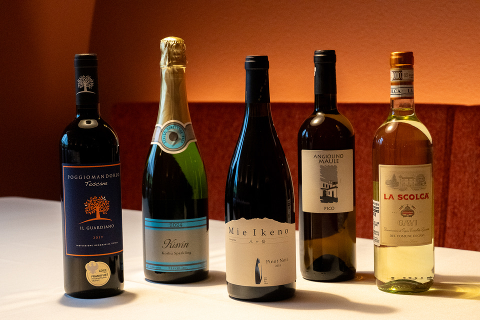 ここで登場するペアリングワインは、提携ワイナリー「ドメーヌ ミエ・イケノ」のピノノワール。希少な日本ワインとして有名な1本です。ソムリエさんからは「しっかりと酸味や果実味が残っており、燻製や七味などお料理のいろいろな香りをすべて包みこめるワインになっております」と紹介されました。