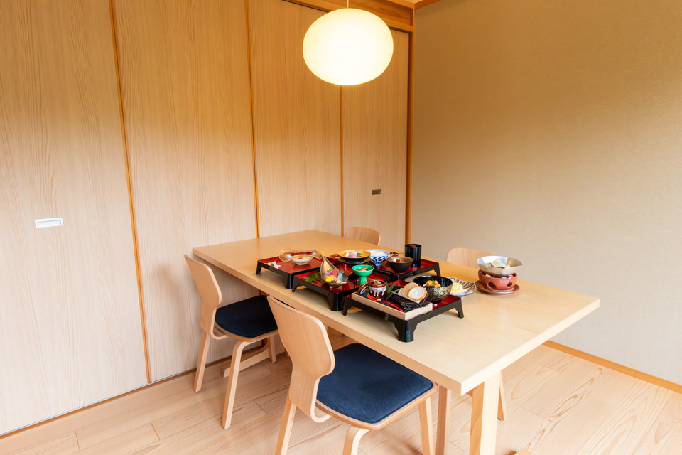 宿泊したのは定員4名の和室ですが、それ以外にも定員2名の和室や最大8名まで宿泊できる特別室「三日月の間」、ケージなどが用意された「愛犬ルーム」もあります。和室といっても使いやすい家具が置かれており、立ち上がりやすい高さの座イスやベッドは、ご高齢でも利用しやすいかと思います。