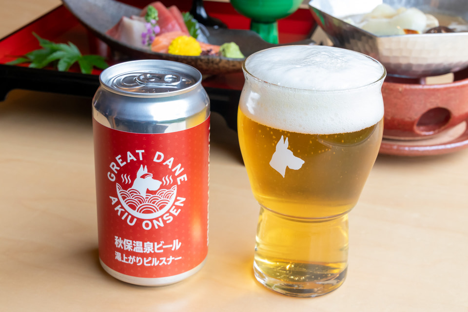 グレート・デーン・ブリューイングが醸造している「湯上がりピルスナー」は秋保温泉旅館組合とコラボしたもので、同社のお店か組合に加入している秋保の旅館でしか飲めないレアなビール。副原料に秋保で採れた高品質のお米を使用することで、クリアで軽やかなボディとほのかな甘みを実現し、まさに湯上り後の一杯として最適なビールです。そして、軽い口当たりは新伊達会席にもよく合います。
