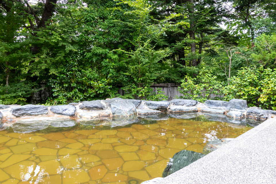 客室を紹介する前に温泉旅館の醍醐味である大浴場と、界 秋保ならではの施設「せせらきラウンジ」を紹介しましょう。大浴場は内湯と露天風呂で構成されており、内湯には約41℃の「あつ湯」、約37℃の「ぬる湯」があり、露天風呂は約40℃の湯温になっています。泉質は「ナトリウム・カルシウム-塩化物泉」で、湯冷めしにくく、筋肉痛、末梢循環障害、冷え性、疲労回復、自律神経不安定症、不眠などに効くとされています。